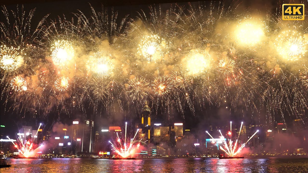 Amazing and beautiful fireworks show in National Day of Hong Kong in 1st day of October 2018 at 4K UHD in Star Ferry. Video is ... source